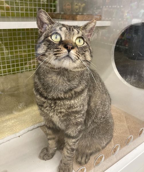 MICKEY was this outgoing the very first day at Petco! He loved all the people going by him and looking out the store doors to see what was happening in the parking lot. He's brand new so we don't know alot about him but is very friendly and seems open to being friends with other cats or with a dog friend. He is also about 3 and FIV positive.