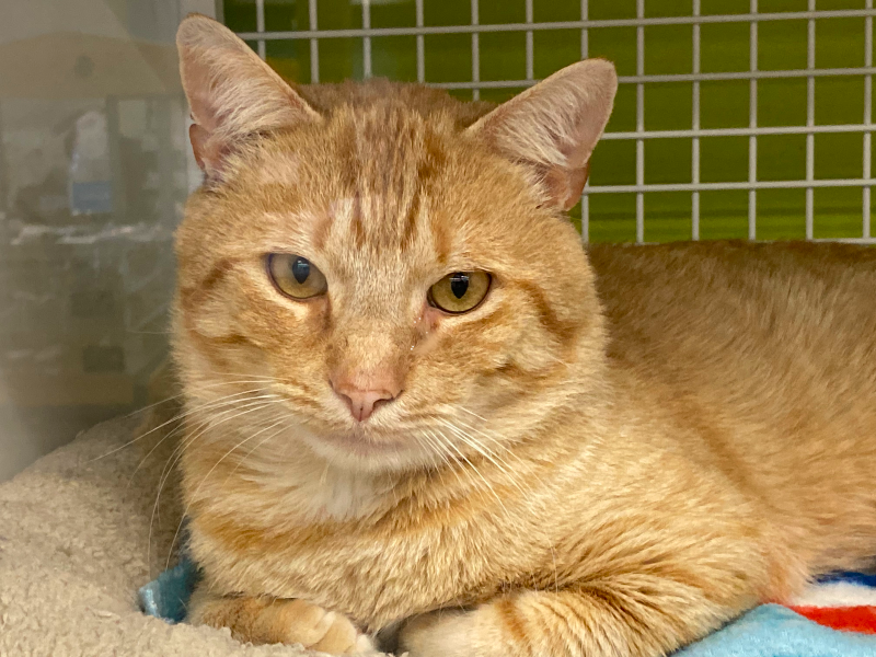 Carter is a sweet, affectionate and gentle kitty who came to us as a stray. He was living outside a pizza place in a cardboard box until one of our volunteers reached out to see if we could take. He is not a fan other male cats, likely due to living outside and having run-ins with them, but he definitely gets along with girl kitties :) He's very talkative at times so if you meow at him be prepared for a long conversation!